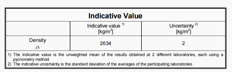 旨在用于实验室测试其制粒尺寸程序的准确性和有效性,或用于校准制粒尺寸仪器。如果与测量技术兼容,则应使用总样品。如果需要进一步细分,建议旋转旋转,将子样本提取到约1克。标称筛网尺寸在480至1800µm之间的一堆筛子,可使用BCR-131进行校准。然后计算经过单个筛子的粒子的质量分数,并重复这个过程几次N,给出Sq₃的平均值和相关的标准差。然后,通过参考本证书中包含的认证结果,从平均Q₃'s 中获得单个筛子切割尺寸的等效体积直径;通常需要在相邻的Q3表值之间进行线性插值。应注意的是,只有当筛子用于与BCR-131组成颗粒具有相同形状系数的颗粒组成的材料时,这些筛子校准才严格适用。