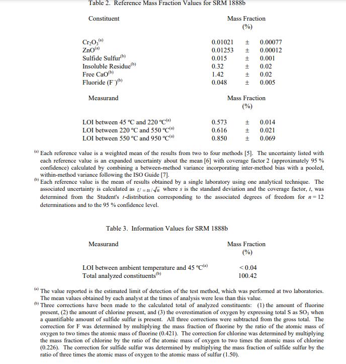 信息值:NIST SRM 1888b 硅酸盐水泥(标准品)表 3 中报告了两个信息值。信息值被认为是 SRM 用户感兴趣的值,但没有足够的信息来评估与值相关的不确定性 [2]。