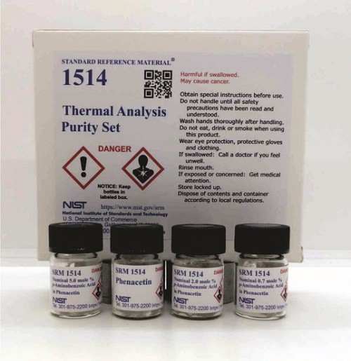 NIST SRM 1514热分析纯集(标准品)是一组含有“纯”苯磺酸和菲那西丁的4瓶,分别掺杂了对氨基苯甲酸的0.7%、2%和5摩尔%